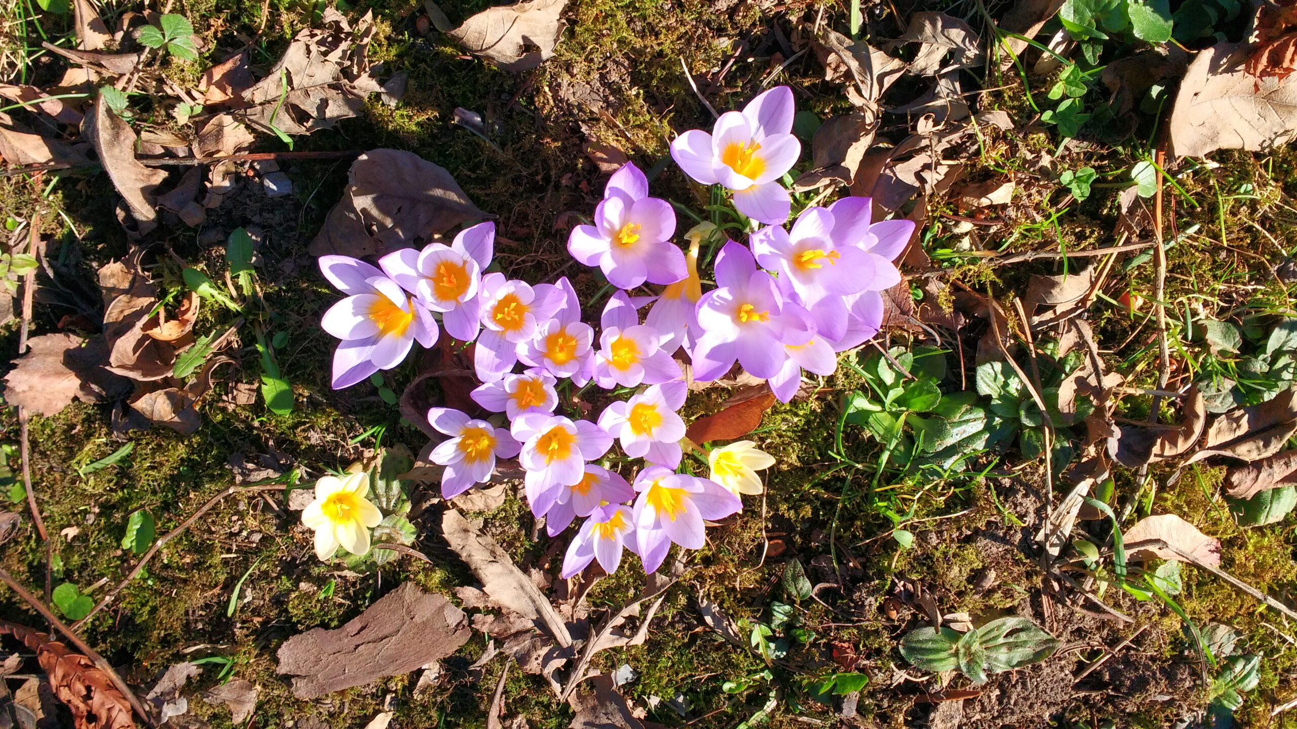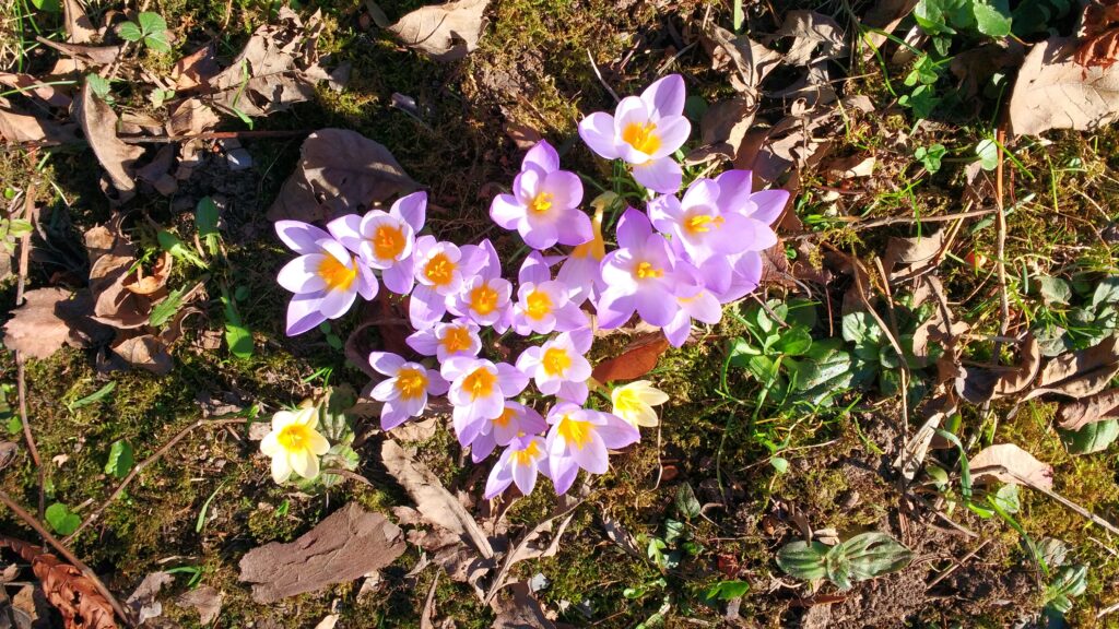 Crocuses. They just spring up in the grass.